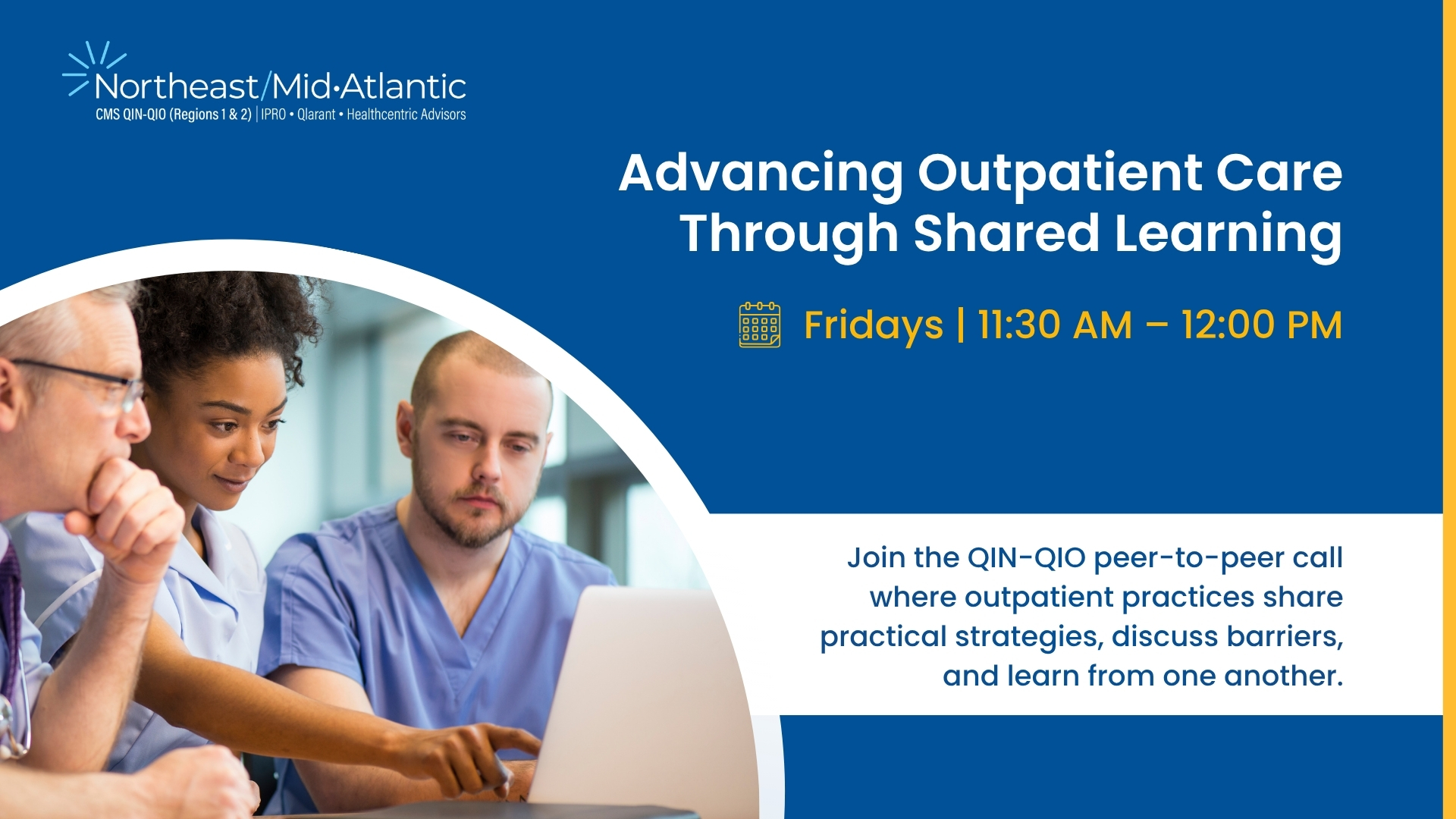 Join the QIN-QIO peer-to-peer call where outpatient practices exchange practical strategies, navigate barriers, and strengthen care through shared experience. What We'll Discuss: Improving Patient Outcomes Chronic disease management strategies Behavioral […]